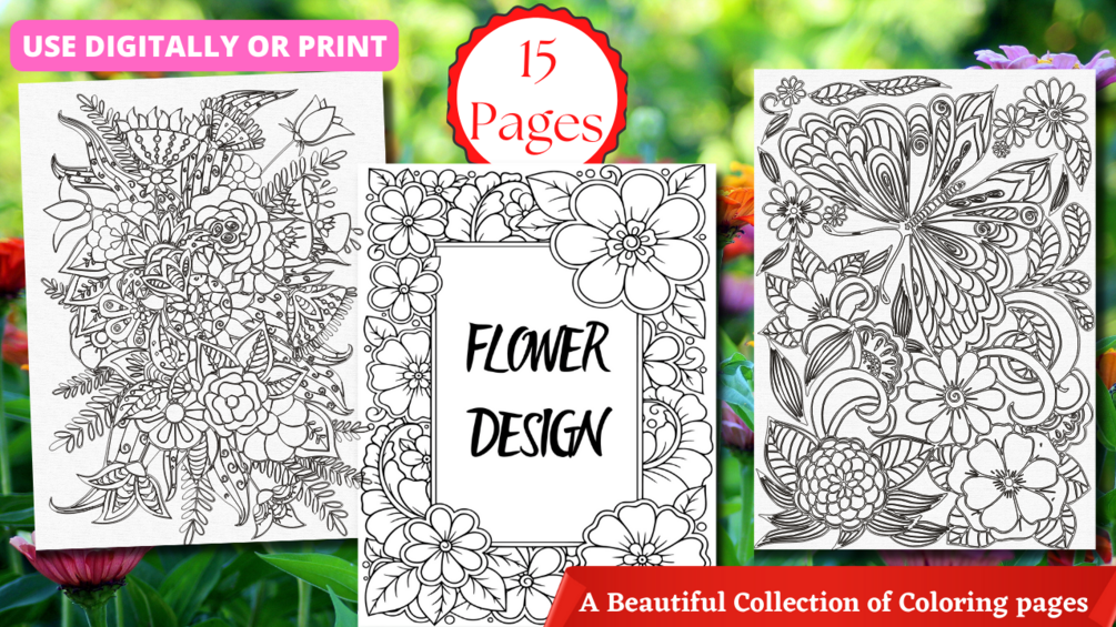 This adult coloring pages has 17 beautiful flower designs including flowers, bunches, vases, and a variety of flowers. It provides hours of fun, calm, relaxation and stress relief through creative expression. These beautiful designs are printed single-sided and range in complexity and detail from beginner to expert-level.